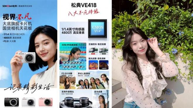 品牌的持续崛起,离不开产品迭代与技术创新的坚实支撑。近年来,松典深耕影像领域,持续推出兼具技术实力与用户体验的新品,实现多项核心技术突破。以旗舰新品VE418大底卡片机为例,其搭载1/1.4英寸大底传感器与4800万真实像素,突破了国产卡片机在进光量、动态范围和信噪比方面的瓶颈。配合F2.0大光圈与逆光成像优化技术,VE418在夜景、逆光等复杂场景下仍能呈现自然通透的全彩画面。还支持鱼眼、显微、广角三款外接镜头,赋予用户专业级的创作自由度。此外,五轴物理防抖、30张/秒高速连拍、智能人脸追踪对焦等功能的集成,将中高端单反的技术下放至便携机身,大幅降低了专业影像创作的门槛,精准定格每一个动态瞬间,更支持外接镜头拓展,实现一机多用的创作自由。推动国产影像技术从“跟跑”迈向“领跑”。
